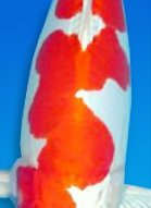 KOI COLOR: Koi colors change throughout their road to maturity. All koi color comes from three types of pigment color mix: black, red, or yellow. It is advised to feed your koi color enhancing food to bring out these three natural pigments, especially during summer, when koi have heartier appetites. To protect their color, it is important to provide the most optimum underwater environment for your koi. If there is an abundance of pollutants (ammonia, nitrites, nitrates), your koi's color and vibrancy will fade. pH levels also have an effect on koi color. High pH levels of 8.0+ will cause your koi's black pigment to appear softer, while a more acidic pond water, around 6.0-7.0pH, will cause your koi's red pigment to fade. Hardness of the water plays a role as well. Soft water affects red pigment, while harder water fades out black pigment. Koi color is richer in spring and fall months, when water temps are slightly cooler.  |
