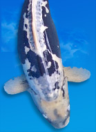 | The Matsukawabake is an oddity, in that the distribution of black and white areas changes according to the seasons and the temperature of the water in which it is kept. However, this does not amount to a complete reversal of pattern. The koi can turn completely black or completely white under some circumstances, but can display interesting shadowy black sumi in the transition periods. Gin-Rin Goshiki and Doitsu Goshiki add even more complexity to an already fathomless variety. Interesting fish, nice addition to the koi collection. |