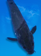 | In Magoi, the scales are actually deep bronze, but the fish appear black when viewed from above. Magoi are not recognized as true koi by some show organizers, but that does not stop them from being kept. Free of the stunting effects that can arise from selective breeding for color or pattern, these fish can become huge. For that reason, Magoi blood is being reintroduced into some Go Sanke bloodlines to speed and maximize growth. This breed often gets lost in the dark backgrounds of koi pond surfaces. |
