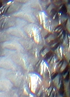 | Ginrin scales are quite different from those on metallic koi. Instead of an overall gleam caused by the reflective pigment guanine, Ginrin scales have a reflective sheen over all or part of their surface creating a glimmering effect. The color they appear is determined by the pigment they overlay - silver (Gin) in the case of sumi or white, and golden (Kin) over hi. More than one type of Ginrin scale can appear on the same fish. Beta-Gin is usually found on the abdomen, along the lateral line or in individual rows toward the dorsal surface. Diamond and Kado-Gin tend to cover the back of the koi. Most hobbyists today do not differentiate between the types of Ginrin, but accept them as already beautiful koi. |