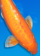 Asagi are fully scaled, nonmetallic fish with a long history. Some pond owners see them as unrefined, dull, and not proper koi at all. Certainly they are an acquired taste, far removed from the brilliantly tri colored modern Showa or the flashy koi grouped in Hikariutsuri. But their quiet elegance serves as a counterpart to their more exotic pond mates and they also have the potential to grow very large. Probably the most common of the Japanese koi. Ideally, the back of an Asagi should be evenly covered in scales that are pale blue at the spot where they enter the skin, but are a darker blue as they grow out. The sharper the definition between the shades, the more impressive the koi. |
