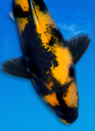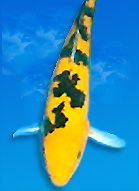 Ki Utsuri is a very old variety traceable back to 1875, at the beginning of the Meiji Era. Eizaburo Hoshino, who was also responsible for improving Sanke bloodlines in the early twentieth century, coined the term "Ki Utsuri" for this yellow and black koi. Before this, they were earlier known as Kuro-Ki-Han. Head patterning of Ki Utsuri can range from the classic lightening strike or V-shape shared with Showa, to relatively small counterpoints on the yellow skin. These don't have to be symmetrical, but they are a must for every koi fish pond. Probably the most common in your typical Japanese koi pond. |
