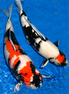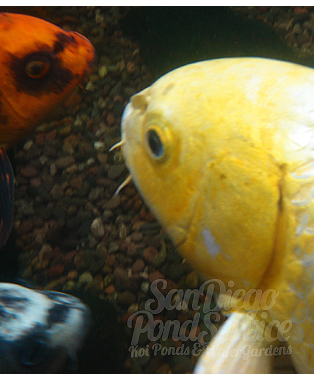 KOI BREEDS: Koi fish, often referred to as Nishikigoi, are the product of hundreds of years of select breeding between common Asian and German carp. Different koi breeds can be found in a variety of colors ranging from pure white to yellow, orange, red, blue, black, even green! Their patterns and color combinations are unique to each individual koi fish. The most popular koi are typically a combination of red, black, and white. Some koi come with long fins (Butterfly Koi) or can be breed without scales (Doitsu Koi), giving them a sleek, streamline appearance. Koi ponds whose koi breeds are well represented and balanced in numbers really show well. Everyone has their own particular favorites, what's yours? At San Diego Pond Service, we enjoy observing and caring for all types of exotic, beautiful koi! |