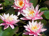 WATER LOTUS: Water lotus are, typically, everyone’s favorite aquatic plant. They arguably produce some of the pond’s most breathtaking blooms. Lotus’ prefer shallow water depths, just a few inches above the lip of the pot, lots of sun, and lots and lots of fertilizer. Sprinkly a little Ironite on their leaves to bring out it's richness. They thrive in water temps above 70ºF and bloom all summer long. Their flowers are brilliant, yet very delicate. |