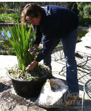 AQUATIC PLANT MANAGEMENT: Aquatic pond plants create a balanced ecosystem, provide an excellent source of oxygen, give coverage and shelter to your koi, can be used to redirect water flow, fight algae, and are a major component in the nitrogen cycle! If you do not have an UV Sterilizer added to your filter system, we recommend using a variety of aquatic plants to help prevent algae blooms. Pond plants fight algae by "starving" the algae from the nutrients it needs to grow. Pond plants absorb the minerals and carbon dioxide in the water, keeping the algae from taking root. Without a balanced ecosystem, or an UV sterilizer, your pond water can look like “pea soup” for months. Plant maintenance is necessary to prevent overgrowth. They can quickly take over your pond, causing harm to fish, pond imbalance, structural damage, or leaks. Dead foliage needs to be removed, roots need to be tended to, and repotting needs to occur to maximize blooms. Our favorite pond plants consist of floating, submerged, bog, lily, and lotus plants. |